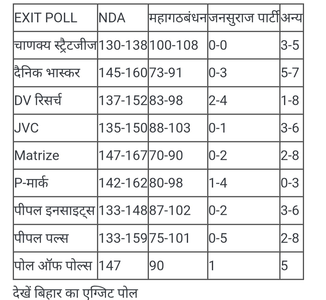 बिहार चुनाव एग्जिट पोल में NDA को बहुमत....