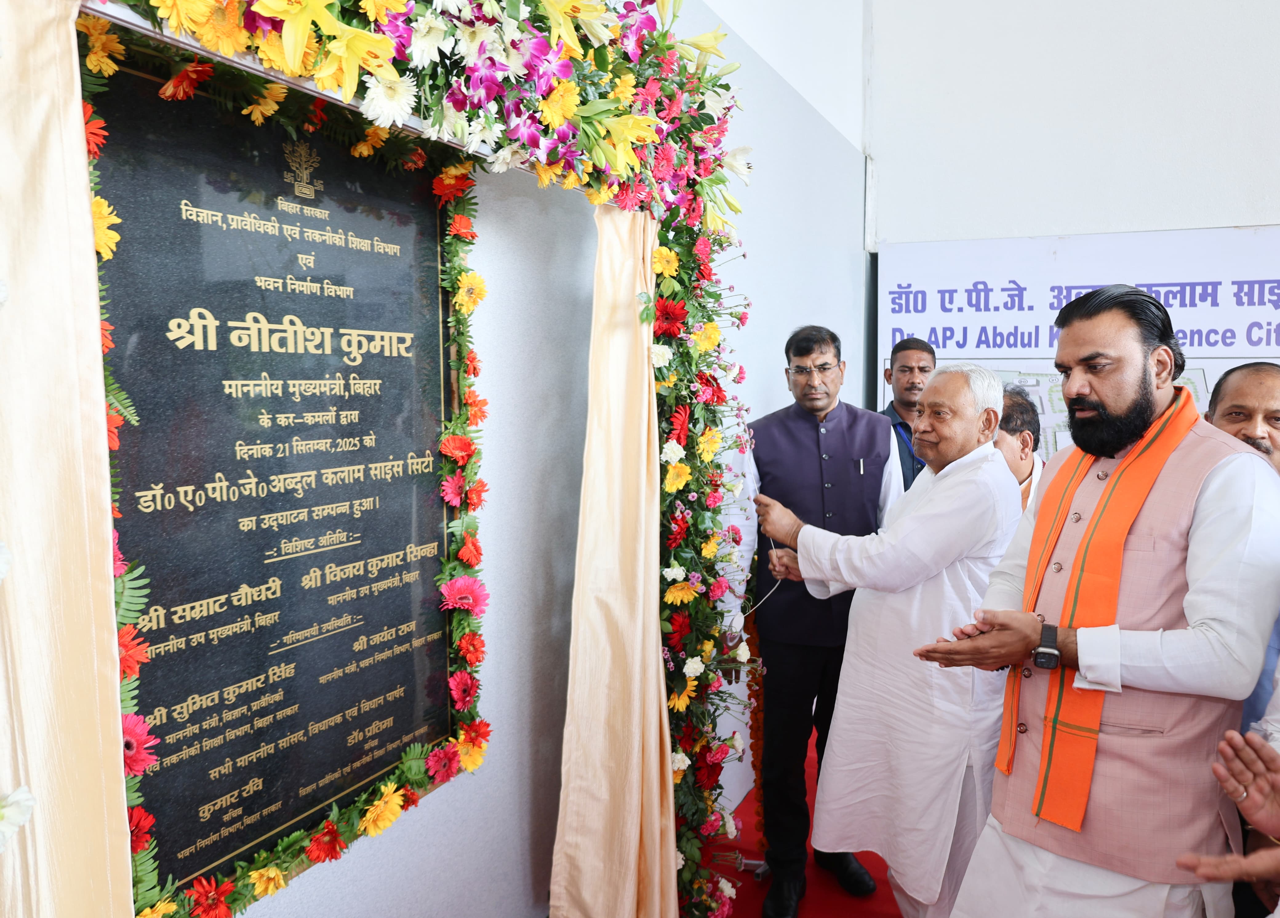 21 एकड़ के भू-खण्ड पर नवनिर्मित डॉ० ए०पी० जे० अब्दुल कलाम साईंस सिटी का फीता काटकर एवं शिलापट्ट अनावरण कर उद्घाटन किया। उद्घाटन के पश्चात् मुख्यमंत्री ने मुख्यमंत्री ने नवनिर्मित अब्दुल कलाम साइंस सिटी के विभिन्न भागों का निरीक्षण किया। मुख्यमंत्री ने पूरे परिसर एवं प्रथम तल पर जाकर विभिन्न गैलरियों, वैज्ञानिक प्रदर्शों का सूक्ष्मता से अवलोकन किया। कार्यक्रम में वहां उपस्थित बच्चों ने ताली बजाकर मुख्यमंत्री का जोरदार स्वागत किया। मुख्यमंत्री ने भी बच्चों का अभिवादन स्वीकार किया। कार्यक्रम के दौरान भवन निर्माण विभाग के सचिव श्री कुमार रवि ने मुख्यमंत्री को डॉ० ए०पी० जे० अब्दुल कलाम साईंस सिटी के निर्माण कार्य से संबंधित विस्तृत जानकारी दी। कार्यक्रम में अब्दुल कलाम साइंस सिटी के निर्माण से संबंधित एक लघु फिल्म प्रस्तुत की गयी। इस साइंस सिटी में विज्ञान आधारित 5 गैलरी, 269 रोचक विज्ञान प्रदर्श, ऑडिटोरियम, 4 डी थियेटर तथा छात्रों एवं शिक्षकों के लिये डोरमेट्री की सुविधा प्रमुख आकर्षण केन्द्र हैं।
