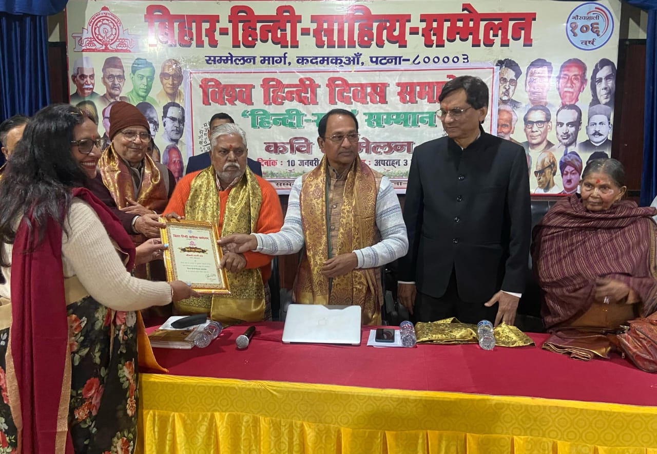 "विश्व हिन्दी दिवस" पर साहित्य सम्मेलन में "हिन्दी-रत्न" सम्मान से विभूषित हुए हिन्दी-सेवी, हुई कवि-गोष्ठी
